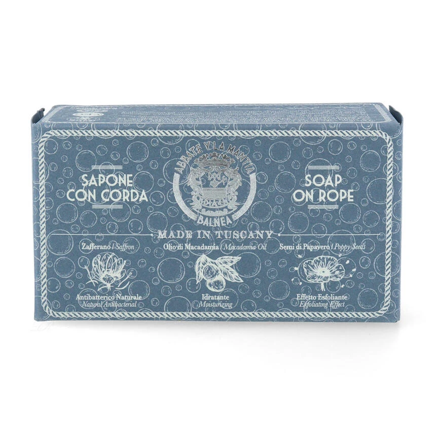 Das Baumwollseil bietet absoluten Komfort, um die Seife nicht zwischen einer Seife und der nächsten ablegen und aufheben zu müssen.