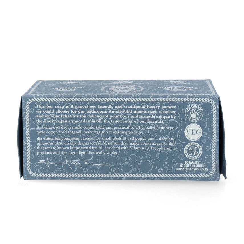 Schrubbende Elemente von kleinen Samen der Opiumblüte in diesem Fall in Peeling-Anteil. Als Bade-Dusch-Seife haben wir an Macadamiaöl (Bio) gedacht, um einen Duschgel-Effekt für den Körper und Shampoo für die Haare zu erzielen. Die australische Walnuss zeichnet sich in der Tat durch aktive Elemente für beide Verwendungszwecke aus.