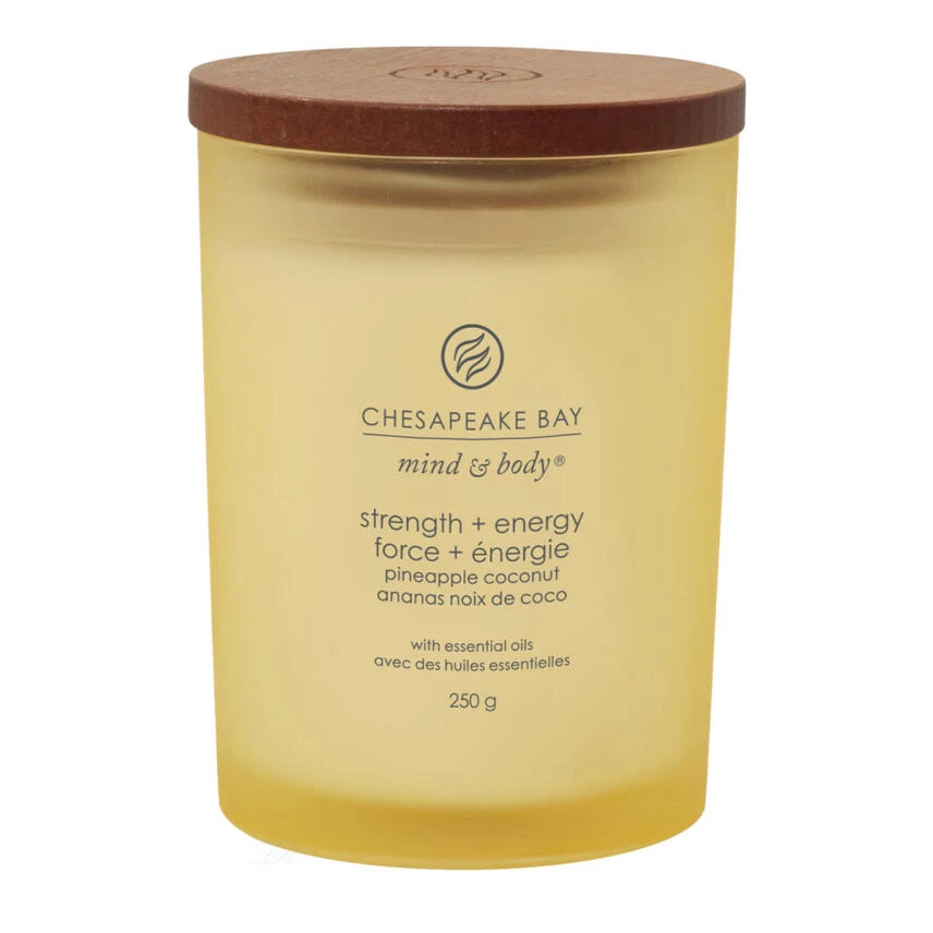 Lebhaft & fruchtig! Die „Strength & Energy Pineapple Coconut“ Duftkerze von Chesapeake Bay belebt die Sinne mit einem fruchtigen und lebhaften Duft mit Noten von saftiger Ananas, Kokoswasser, sonnenverwöhnter Bergamotte und Meersalz.