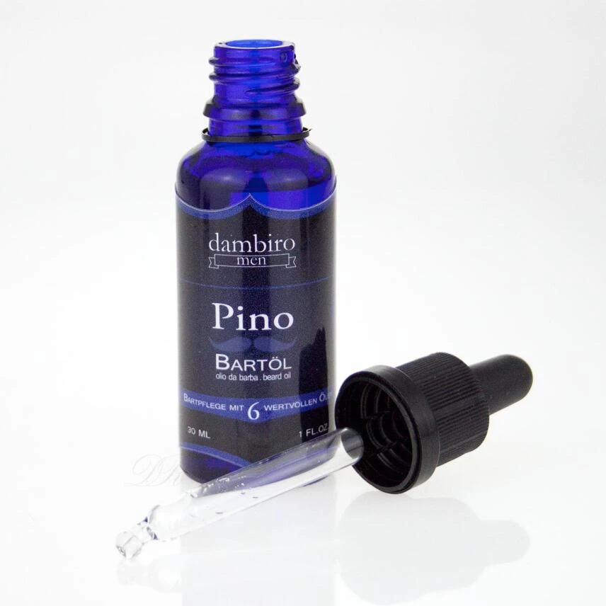 Das Pino Bartöl von dambiro men pflegt das Barthaar sowie die darunterliegende Haut und beugt spannungsgefühlen und Juckreiz vor. Das Öl sorgt für ein weiches und leicht glänzendes Barthaar. Das Bartöl basiert auf einem hochwertigen Aprikosenkernöl, das mit sechs ätherischen Ölen angereichert ist: Patschuli-, Sandelholz-, Zitronengras-, Rosmarin-, Pfefferminz- und Kiefernnadelöl. Das Kiefernnadelöl verleiht dem Pino Bartöl seinen charakteristischen Duft. Es zieht schnell ein und hinterlässt keine Rückstände im Haar.