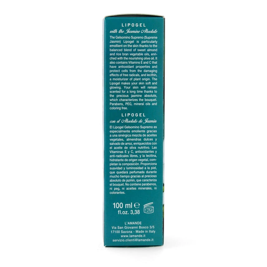 Das Lipogel „Gelsomino Supremo“ von L’Amande pflegt die Haut besonders intensiv dank der harmonischen Formulierung aus pflanzlichen Ölen, Süßmandel, Reiskleie und nährendem Olivenöl. Das enthaltene Vitamine E und C besitzt antioxidative Eigenschaften und schützt die Zellen vor den schädlichen Auswirkungen freier Radikale während das pflanzliche Lecithin Feuchtigkeit spendet. Das Gel pflegt die Haut samtweich und verleiht ihr einen schönen Glanz. Es hinterlässt einen langanhaltend frischen Duft auf der Haut.dambiro