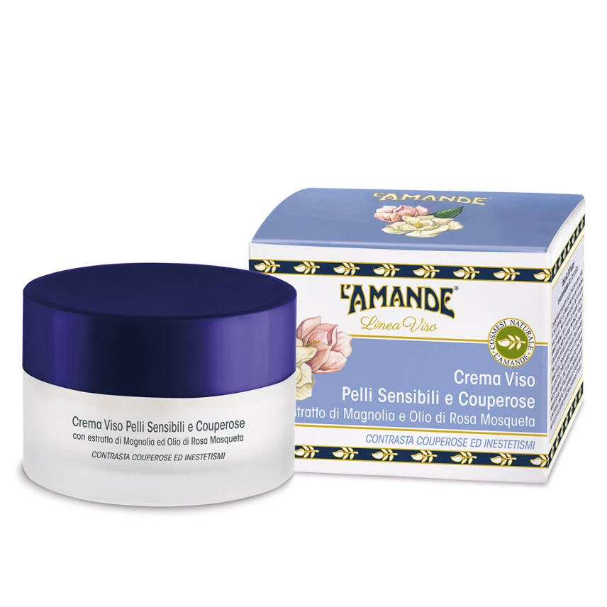 Gesichtscreme für empfindliche Haut mit Couperose. Die regelmäßige Anwendung verhindert und wirkt dem Auftreten von Couperose entgegen, einer Unvollkommenheit, die hauptsächlich die Wangen, das Kinn und die Nase betrifft. Die zusammensetzung aus Magnolienextrakt und Hagebuttenöl trägt zu einer beruhigenden Wirkung in Verbindung mit einem Pflanzenkomplex aus Eruca Sativa-Blättern und Opuntienblüten bei. Die Öle aus Süßmandel, Reiskleie und Jojoba wirken in Harmonie mit dem Antioxidans Vitamin E und dem feuchtigkeitsspendenden Panthenol auch auf den Hydrolipidfilm rückfördernd und normalisierend. Angereichert mit Gamma-Oryzanol aus Reisöl garantiert einen natürlichen Schutz vor Sonnenlicht.