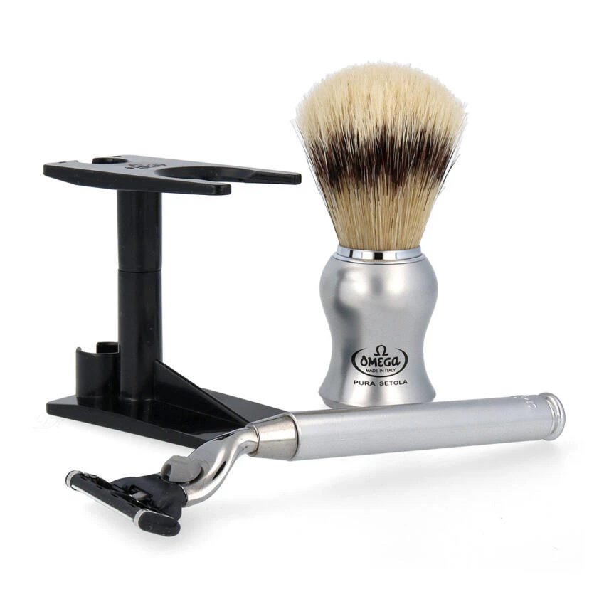Omega Rasierset 81229 Rasierpinsel Borste + Rasierer Mach3