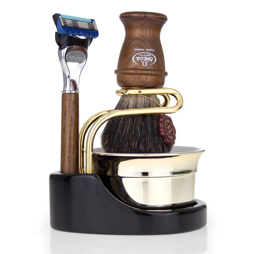 Das praktische Rasierset von Omega besteht aus einem hochwertigen Rasierpinsel, einem passenden Halter, einer Rasierschale und einem 5-Klingen Rasierer mit einer Gilette® Fusion Systemklinge. Da hat man alles zur Hand!