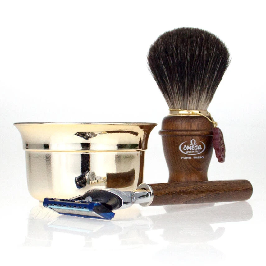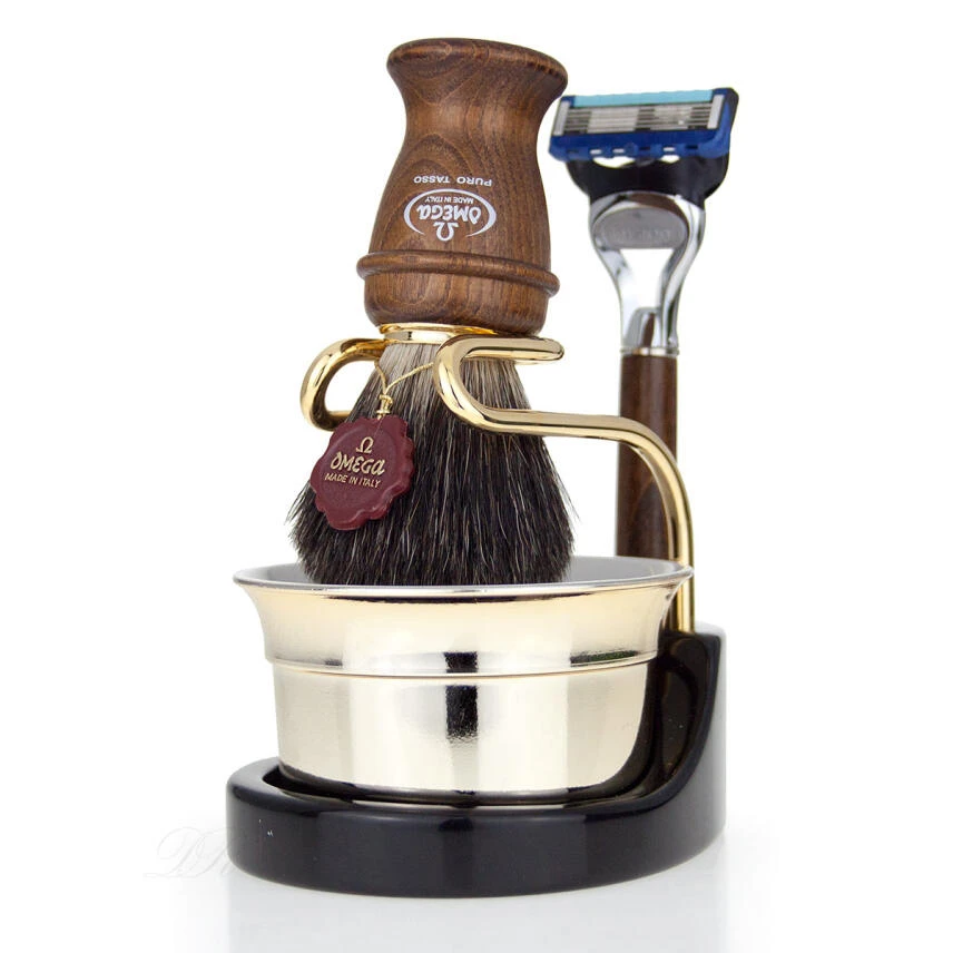 Omega Rasierset mit Rasierpinsel, Halter, Rasierschale & Rasierer