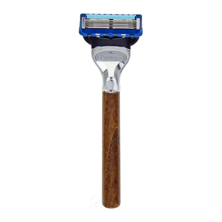 Der 5-Klingen Rasierer hat einen angenehmen Holzgriff sowie eine hochwertige Gilette® Fusion Systemklinge, die bei Bedarf ganz einfach gewechselt werden kann.