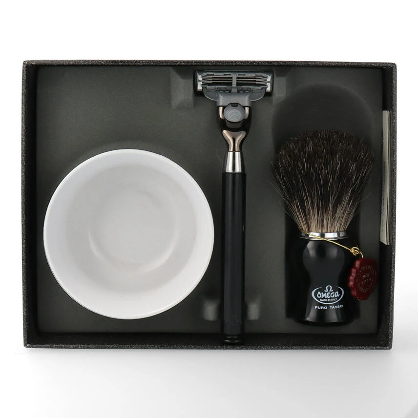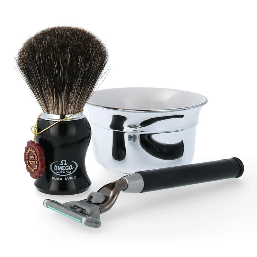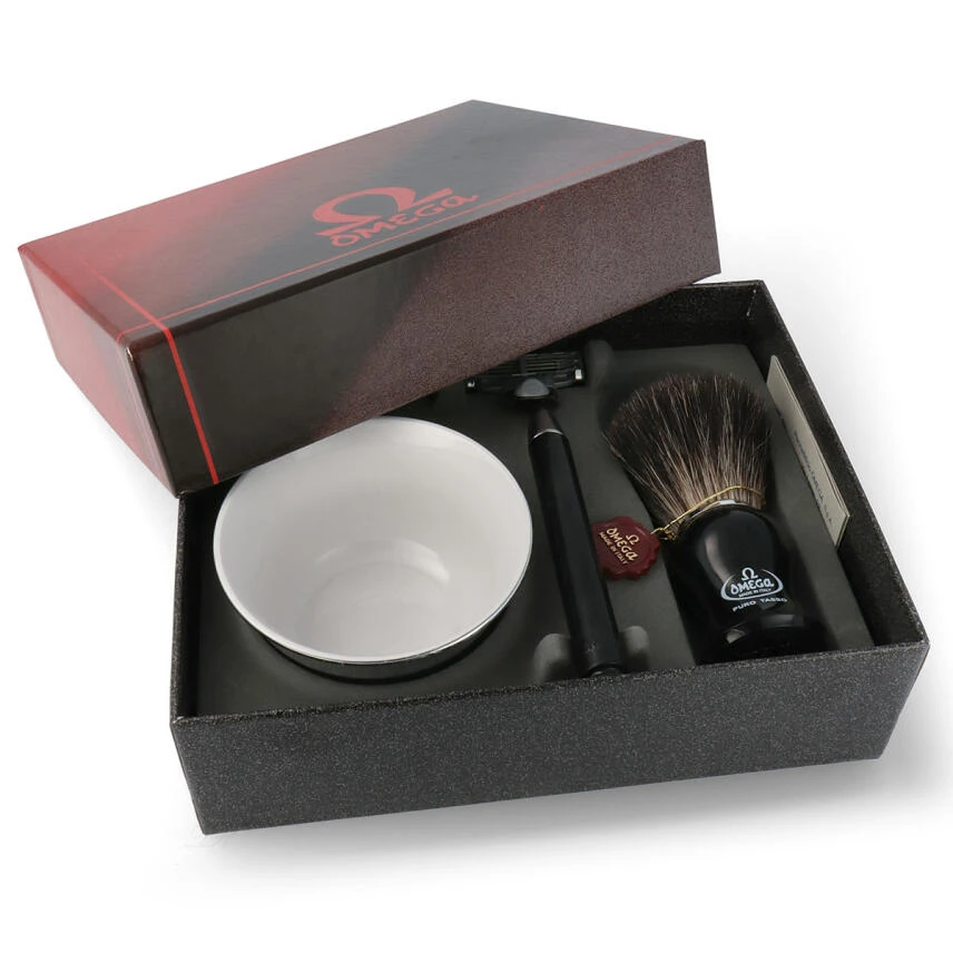 Omega Rasierset mit Rasierpinsel, Rasierer & Rasierschale