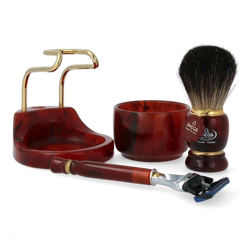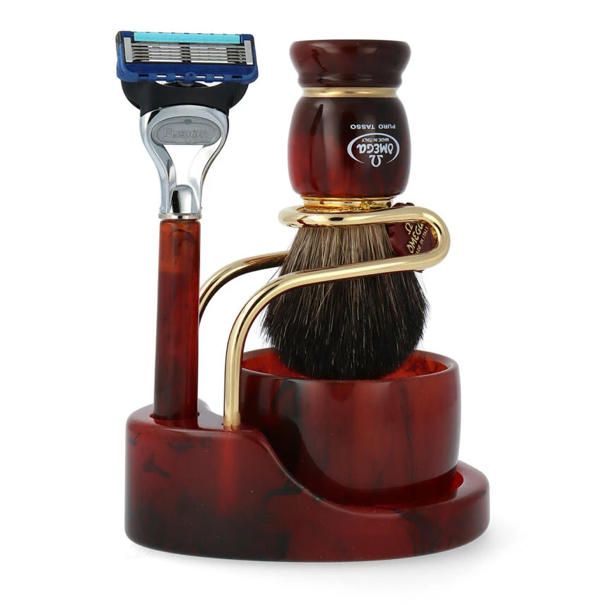 Omega Rasur-Set 6151.11 Rasierpinsel Dachs + Tiegel + 5 Klingen Rasierer