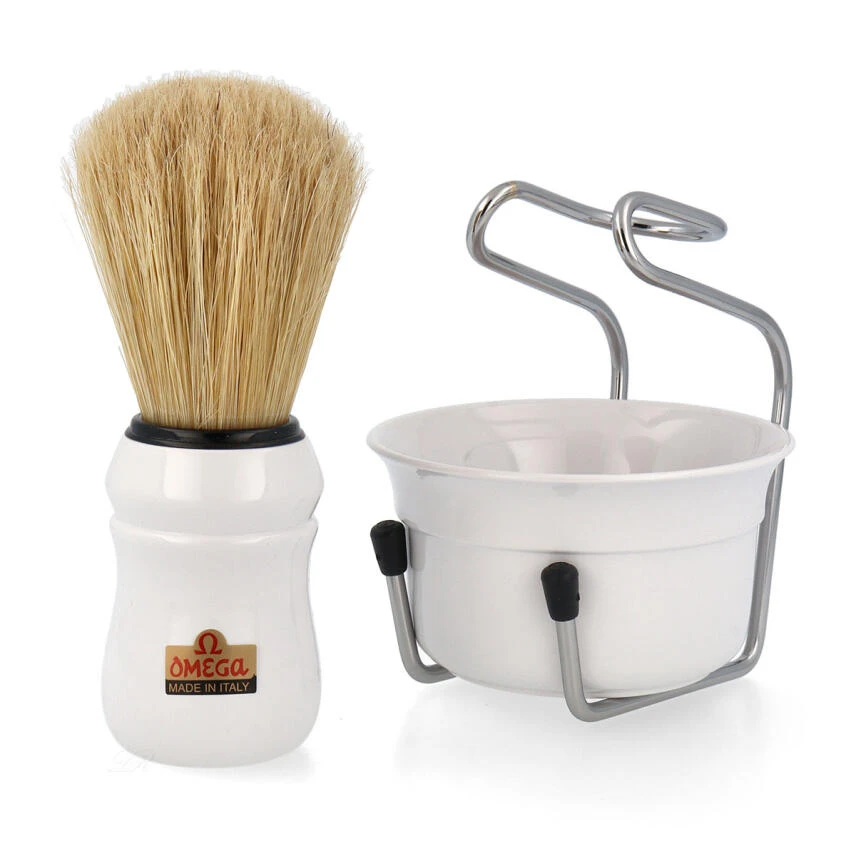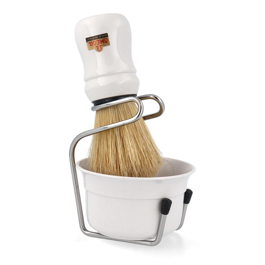 Omega Set om49.18 mit Rasierpinsel & Tiegel (Weiß)
