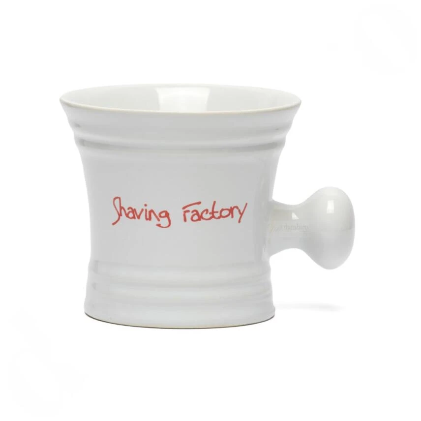 Shaving Factory Rasierschaler ist aus hochwertigem Steingut gefertigt und hat einen griffigen Griff. Die einzigartige Form des Bechers ermöglicht es Ihnen, den Rasierpinsel zu positionieren.