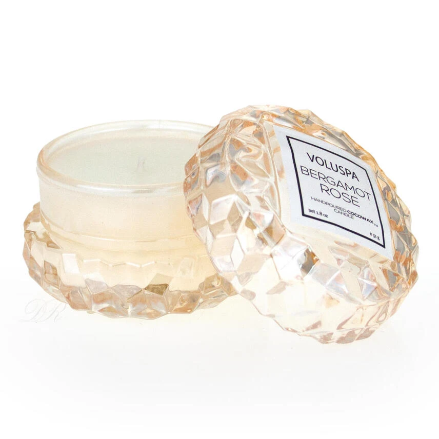 Frisches & blumiges Potpourri! Die Macaron Duftkerze „Bergamot Rose“ aus der „Roses“ Kollektion von Voluspa erfrischt die Sinne mit den Noten von Bergamotte, gelben Gartenrosen und Orangenblüten.